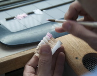 院内に導入しているCAD/CAMシステムなどの歯科技工設備によって、オールセラミックによる1本単位の詰め物から10本以上の大きなブリッジ、インプラント上部構造に至るまでの院内製作が可能になっています。そしてすべての製作工程を院長自身が行い、外注製作では行き届かないような微妙な形態や色調、咬み合わせなどに対応しています。近年オールセラミック材料の進歩は目覚ましく、審美性・耐久性が改善し、金属アレルギーの心配がなく生体親和性が高いなど、メリットの多い材料になっています。また当院内製作におけるオールセラミック治療では貴金属や外注・人件費コストなどを省け、一人でも多くの患者様のお役に立てるようにとの思いもあり、当院では相場の半額以下に価格設定しています。